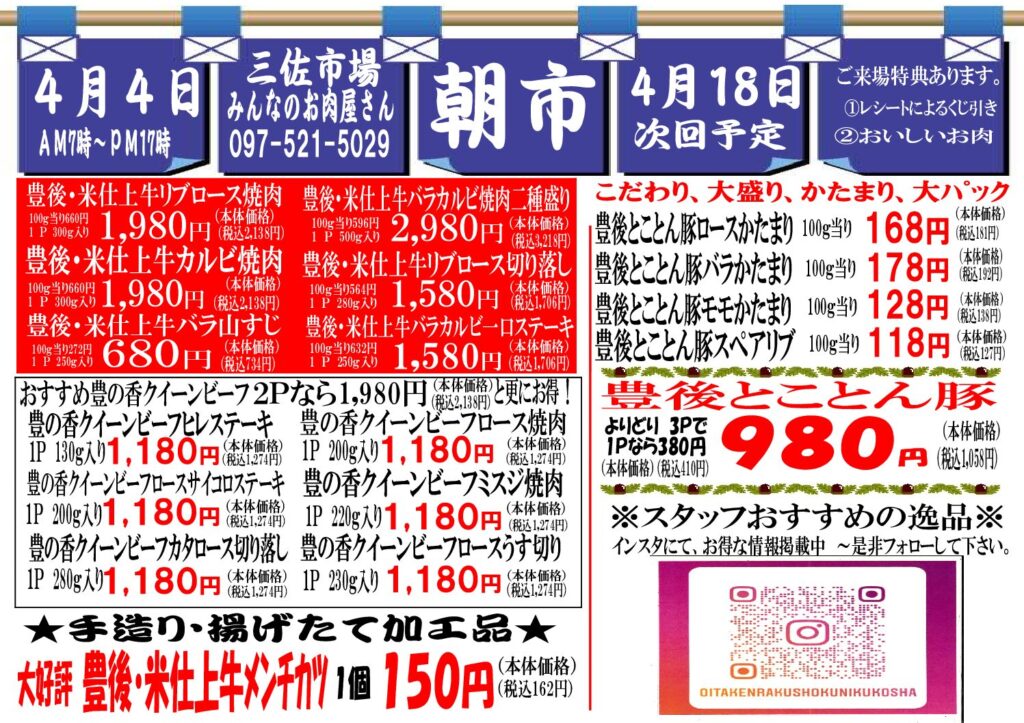 豊後とことん豚 各種よりどり3パック 980円 各部位かたまり肉も準備します