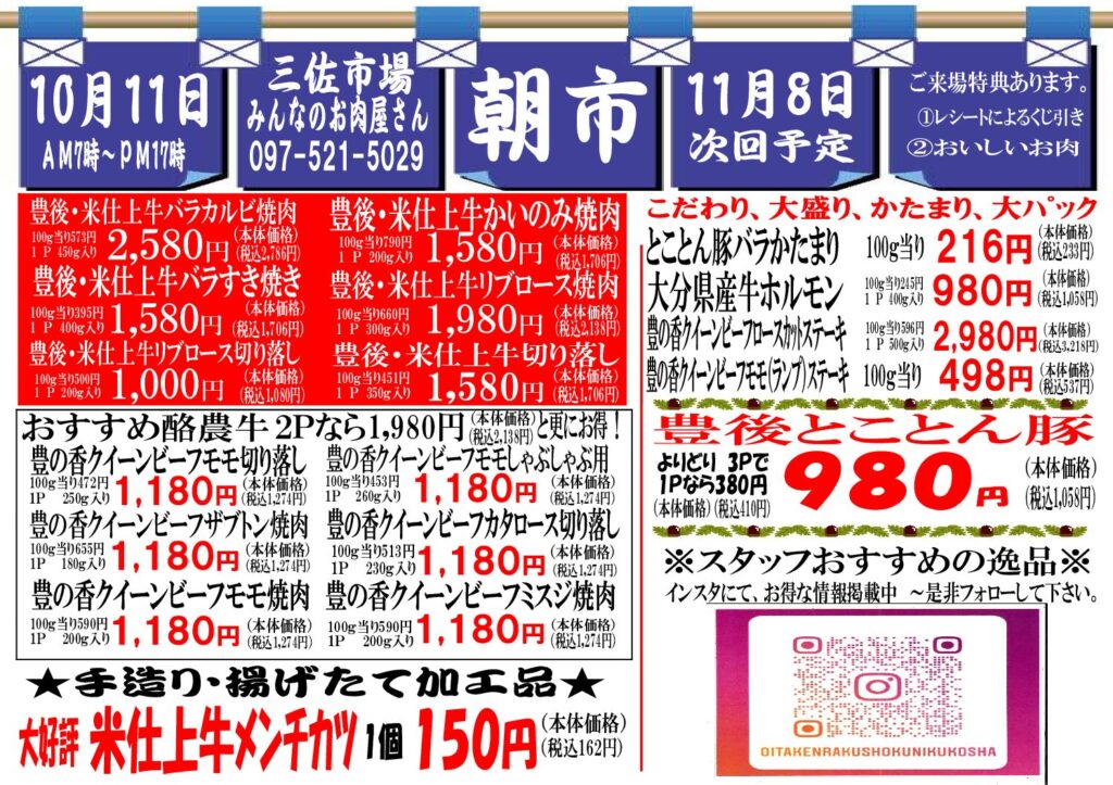 その他、揚げたてメンチカツ、大盛り、かたまり肉、新鮮野菜など、詳しくはチラシご覧ください。