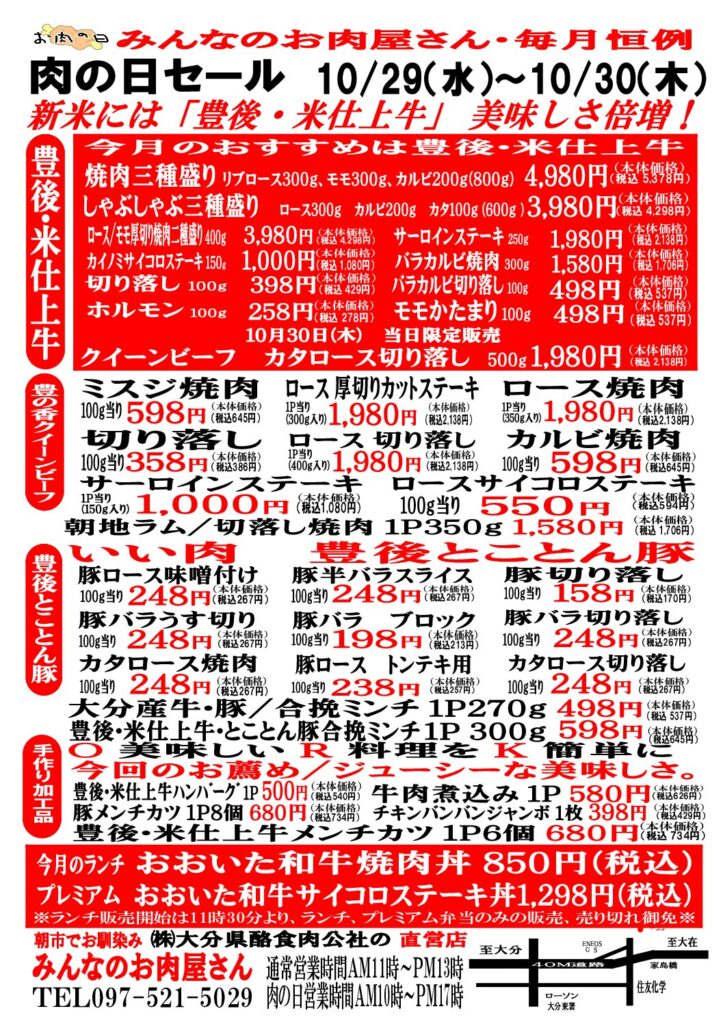 10月肉の日、29日(水)~30日(木)午前10時開店です。
